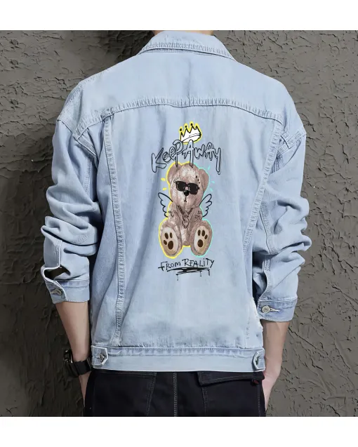 Teddy Bear Keep Away Denim Jacket For Men And Women