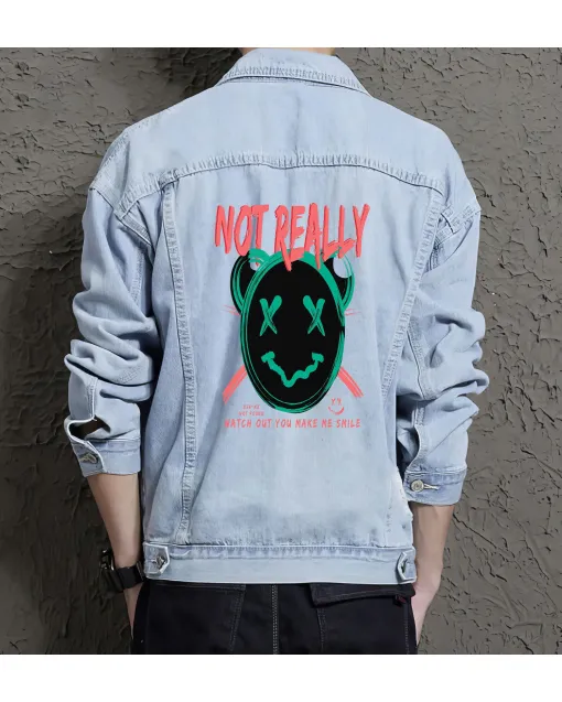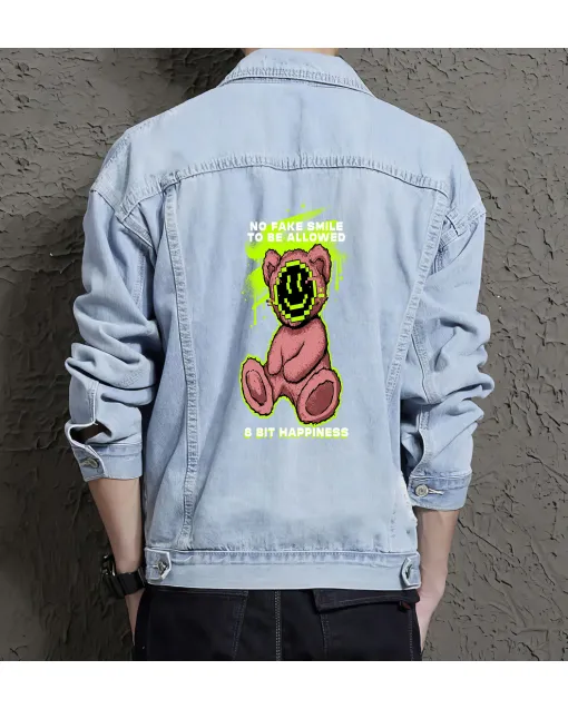 Teddy Bear Put On Smiley Denim Jacket For Men And Women