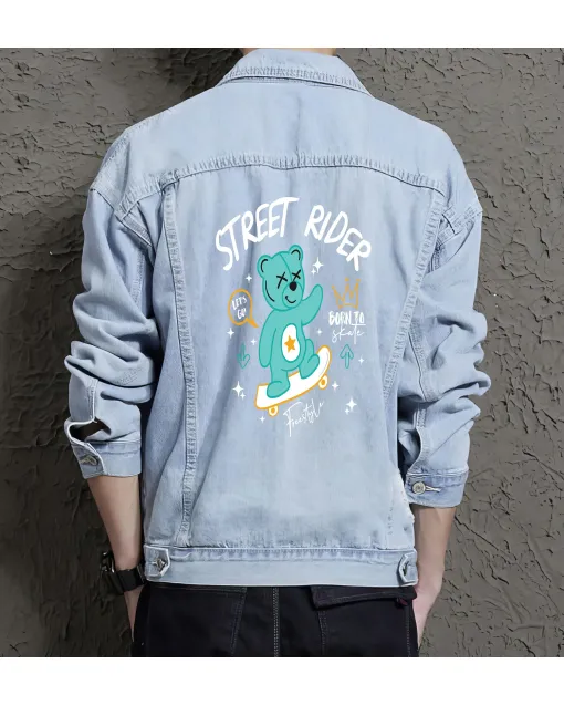 Teddy Bear Street Rider Denim Jacket For Men And Women