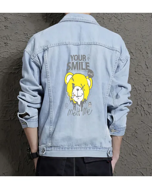 Teddy Bear Zero Graffiti Denim Jacket For Men And Women
