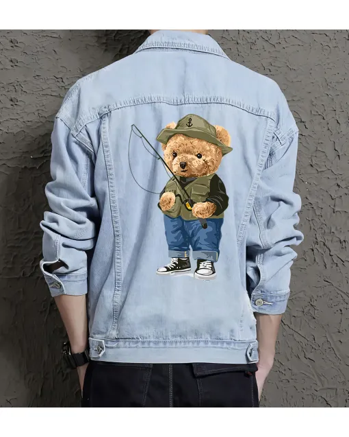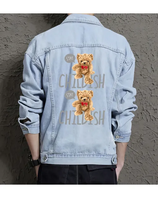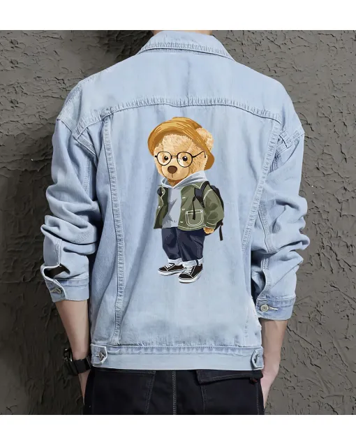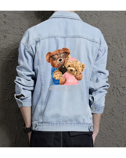 Teddy Couple Selfie Denim Jacket For Men And Women