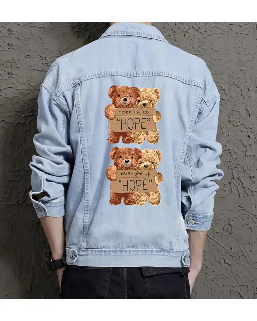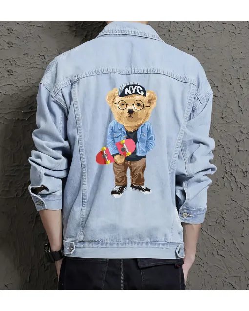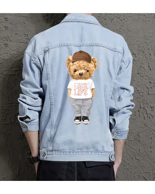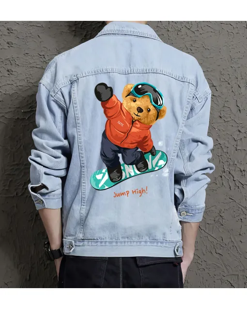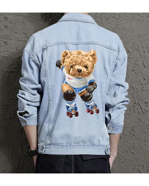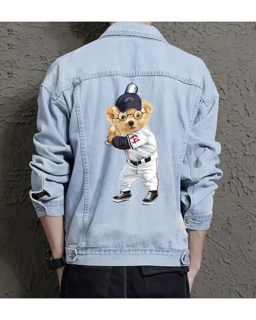 Teddy Playing Baseball Denim Jacket For Men And Women