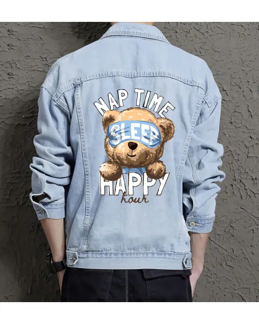 Teddy Nap Time Happy Hour Denim Jacket For Men And Women