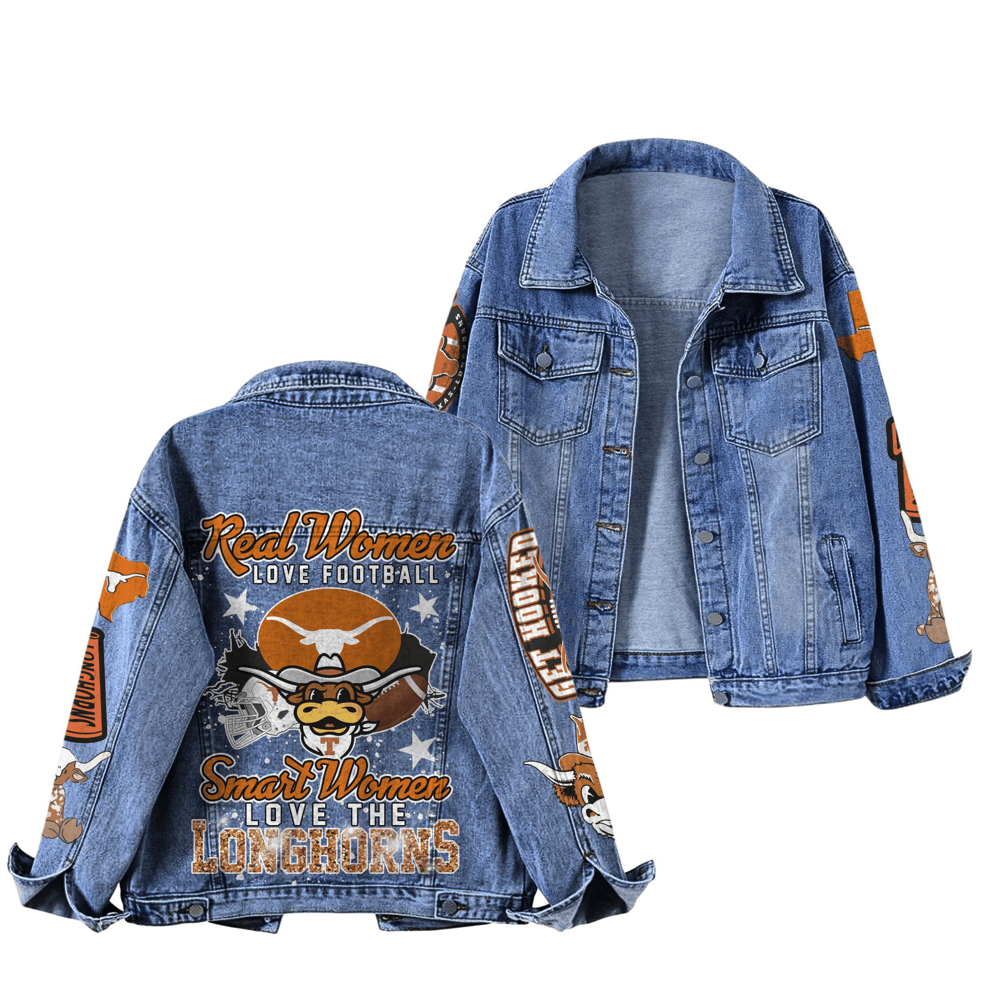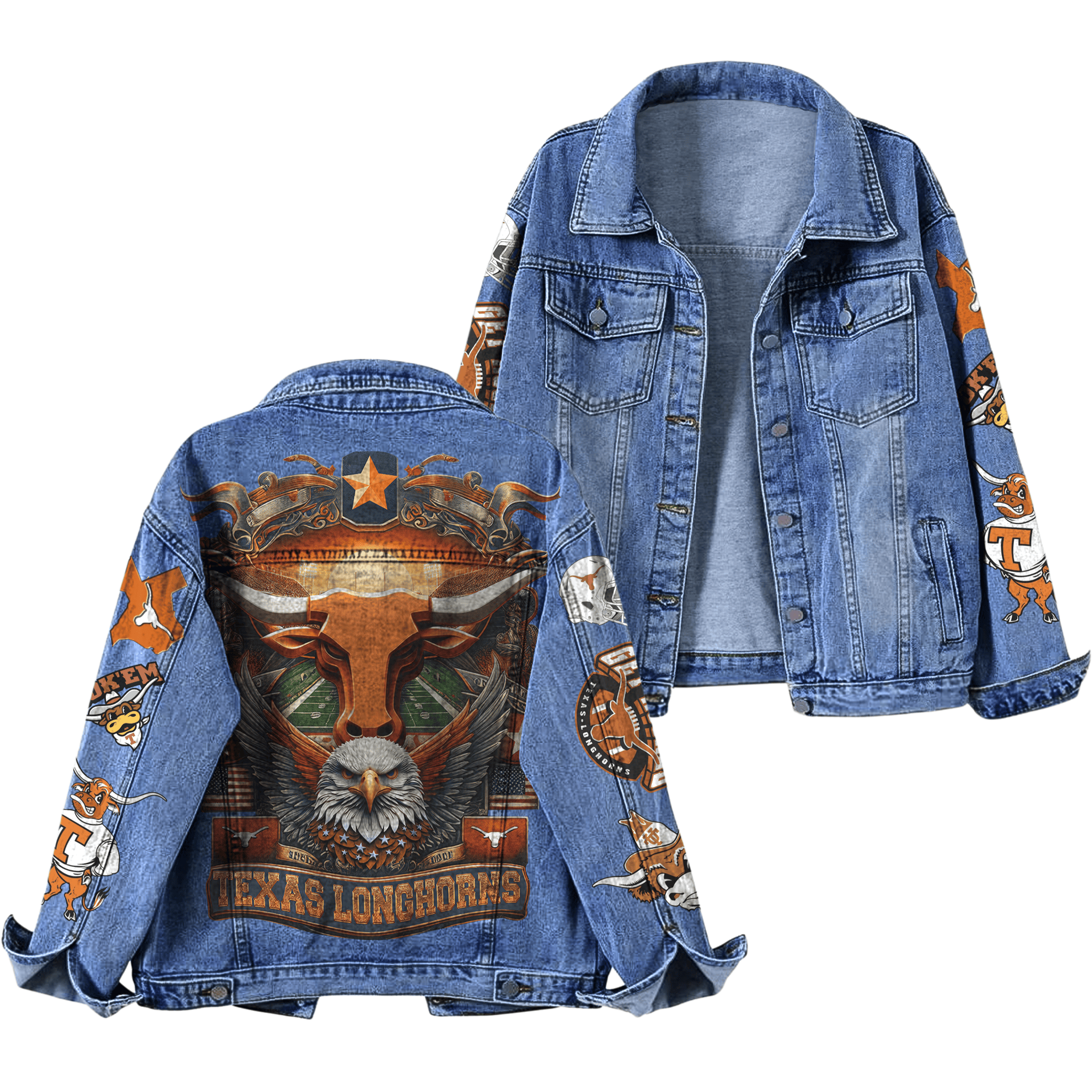 Texas Longhorns Ncaa Style Denim Jacket For Fans