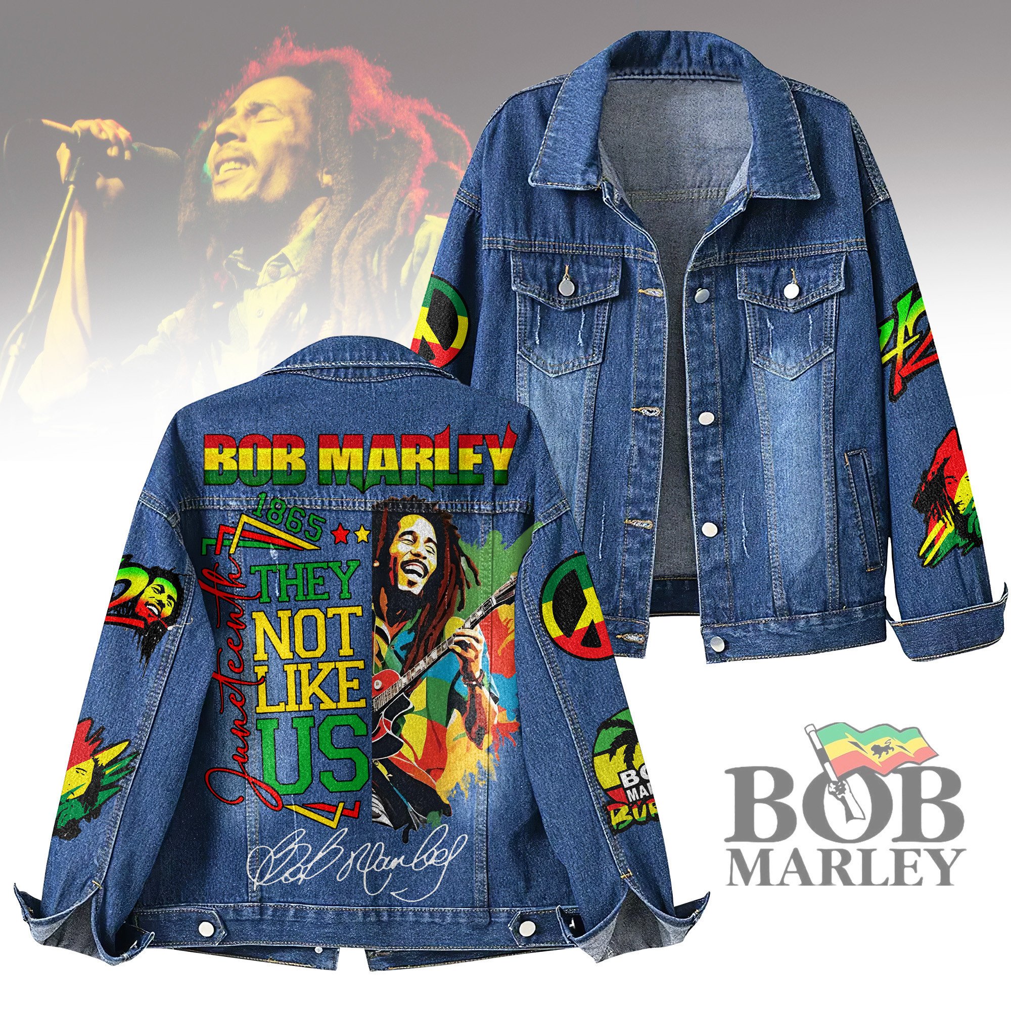 Bob Marley Music Denim Jacket For Men And Women