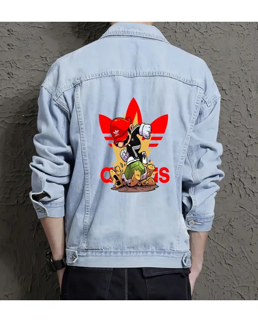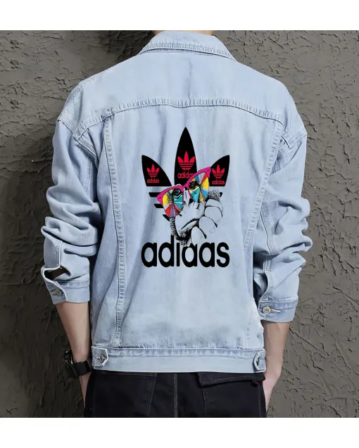Adidas Logo Monkey Casual Denim Jacket For Men And Women