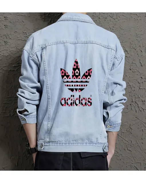 Adidas Logo Flower Casual Denim Jacket For Men And Women