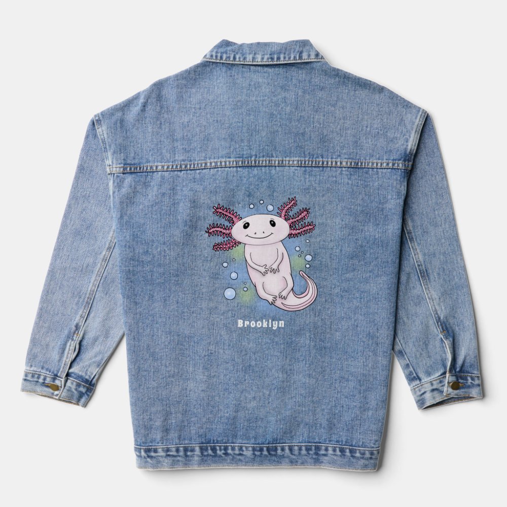 Adorable Pink Axolotl Cartoon Denim Jacket Best Outerwear Gift