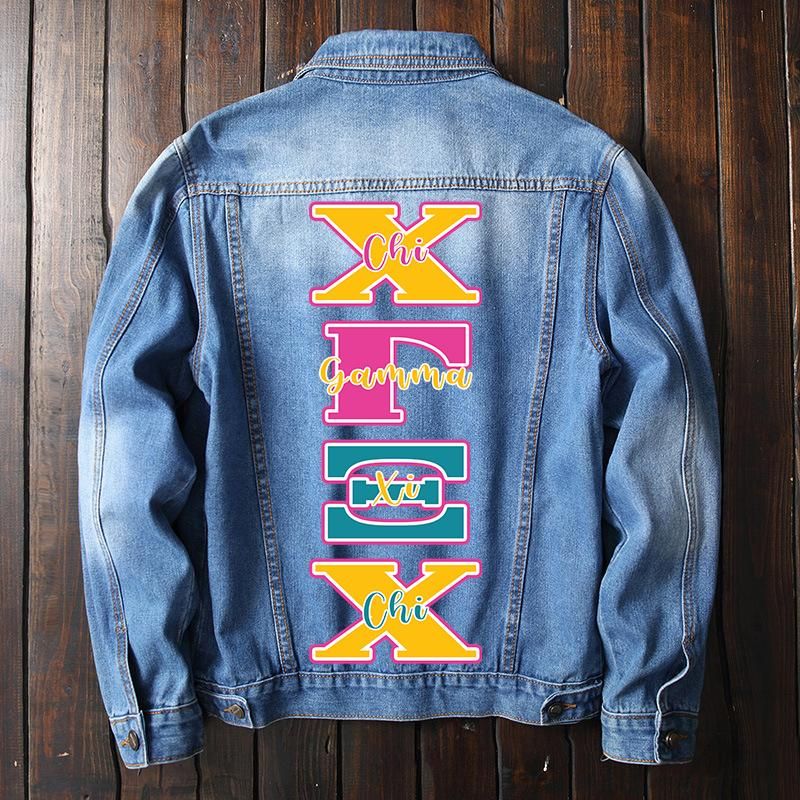 Chi Gamma Xi Chi Denim Jacket For Men And Women Alphabet