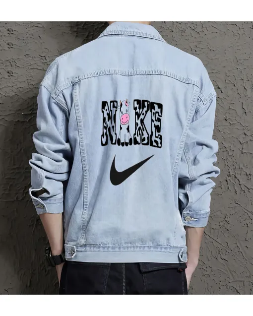 Cow Cartoon Nike Logo Casual Denim Jacket For Men And Women