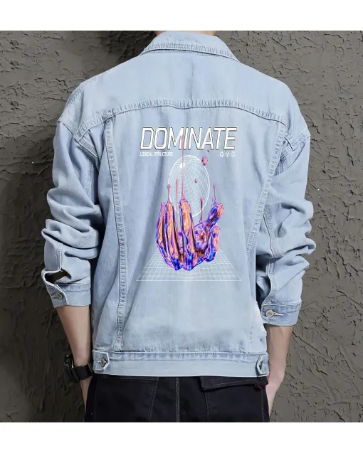 Dominate Hand Graphic Denim Jacket For Men And Women