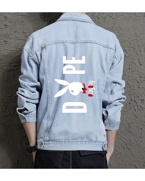Dope Playboy Logo Relaxed Fit Denim Jacket For Men And Women