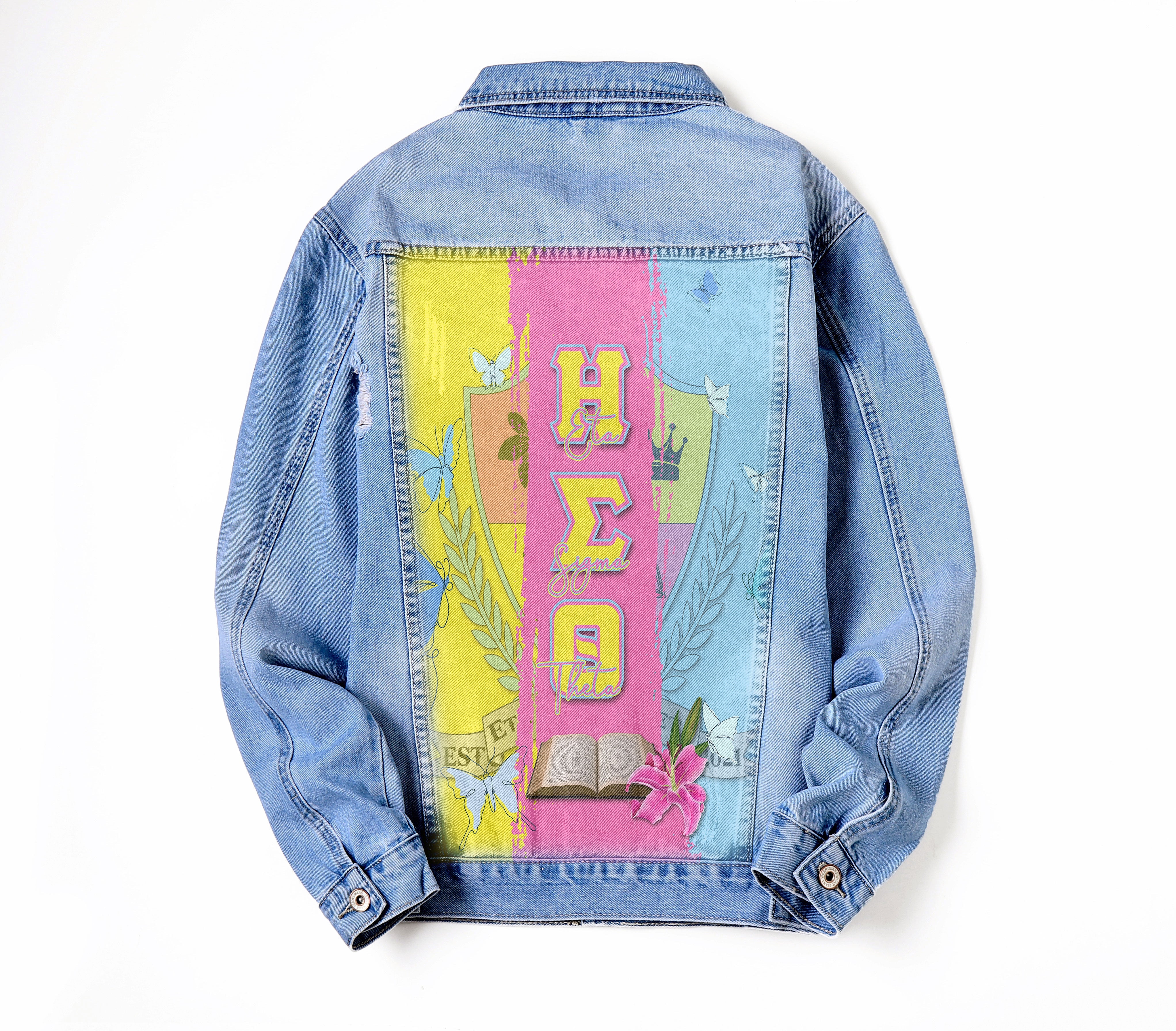 Eta Sigma Theta Denim Jacket For Men And Women Crest Style
