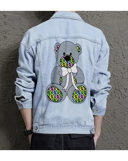 Fendi Logo Bear Denim Outerwear Jacket