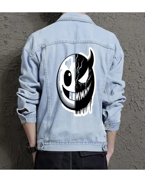 Andrews Distressed White Text With Red Sashito Denim Jacket