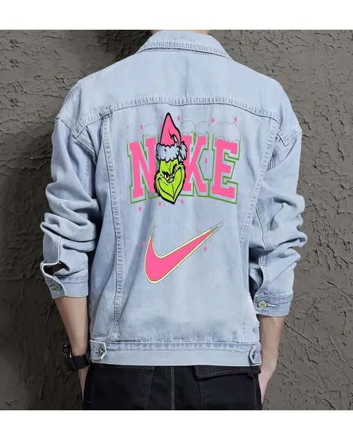 Grinch X Nike Logo Casual Denim Jacket For Men And Women