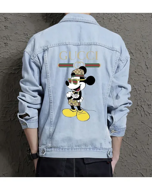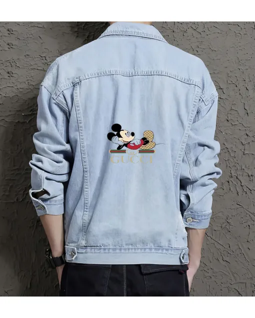 Gucci Logo X Mickey Casual Denim Jacket For Men And Women