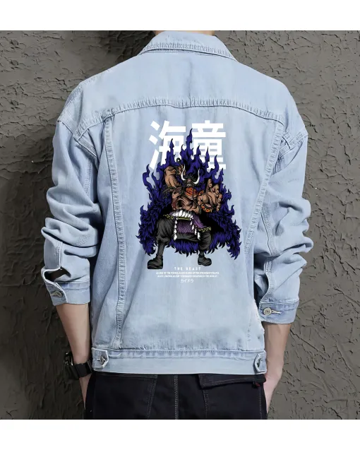 Kachan Distressed White Text With Red Sashito Denim Jacket