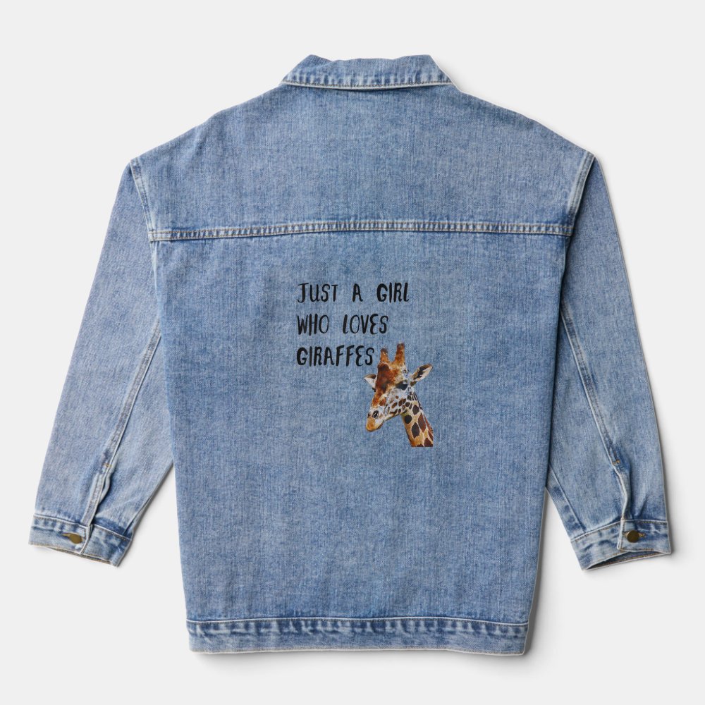 Just A Girl Who Loves Giraffes Cute Animal Giraffe Denim Jacket Best Outerwear Gift