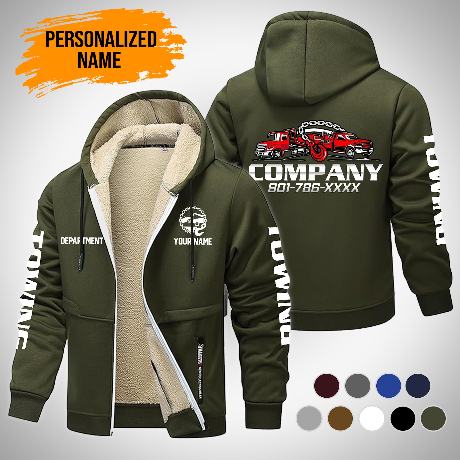 Customized Name Tow Truck Lamb Fleece Thick Coat Army Green