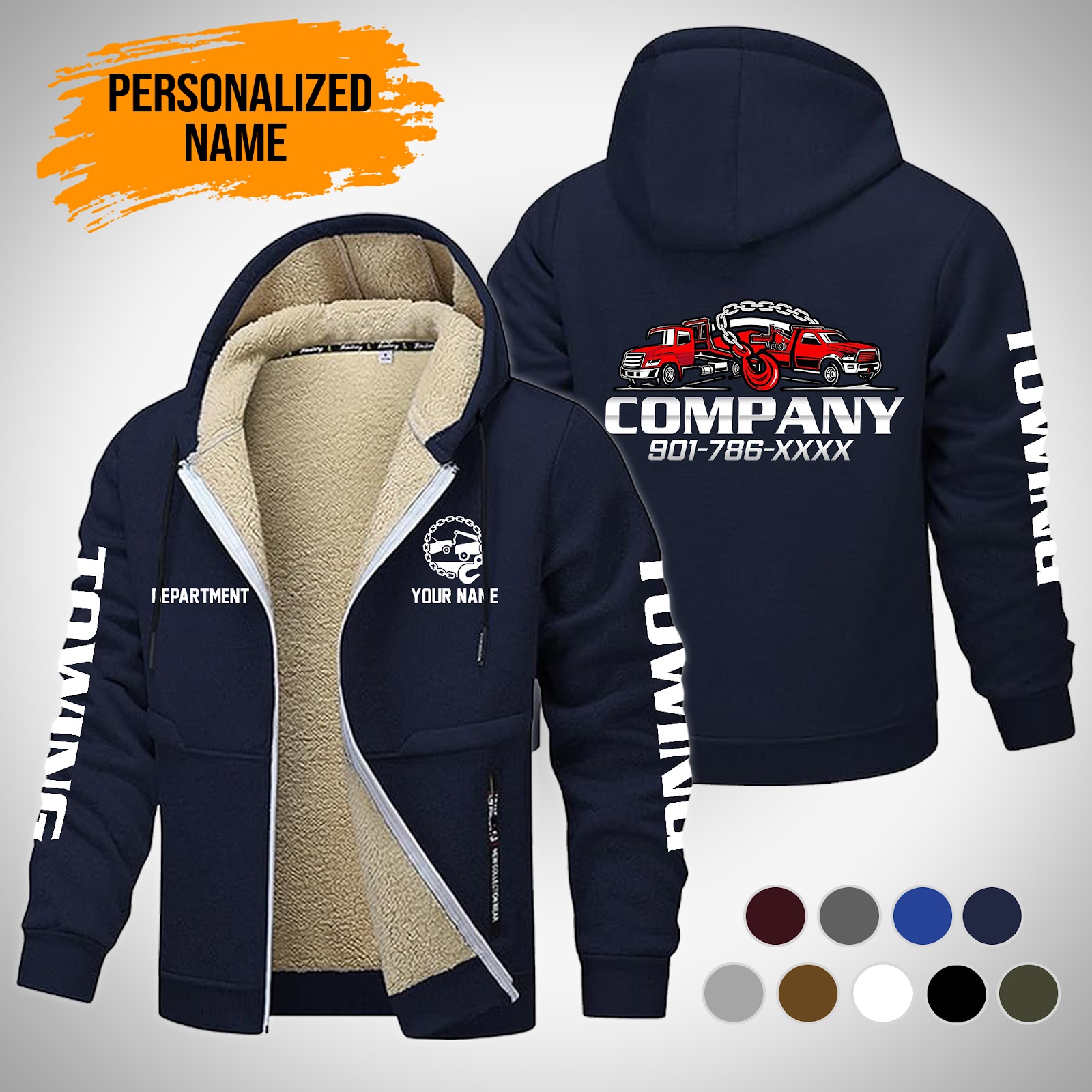 Customized Name Tow Truck Lamb Fleece Thick Coat Navy