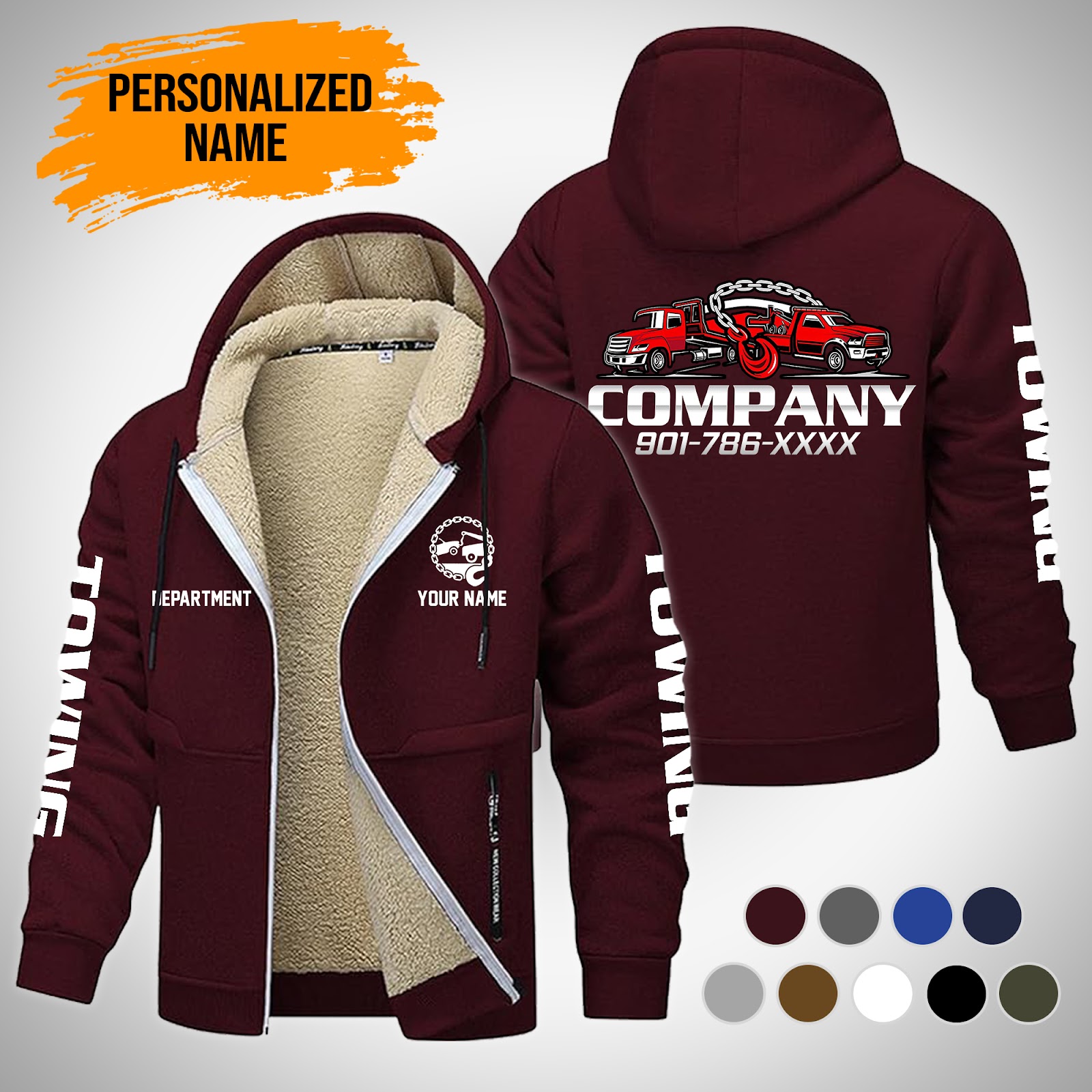 Customized Name Tow Truck Lamb Fleece Thick Coat Wine Red