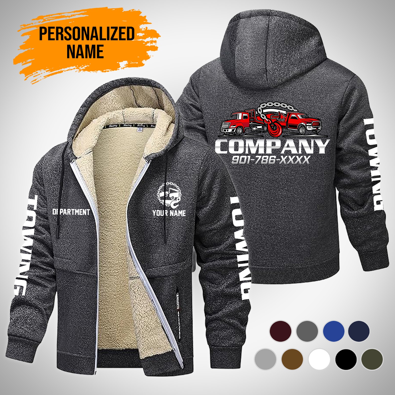 Customized Name Tow Truck Lamb Fleece Thick Coat Dark Grey