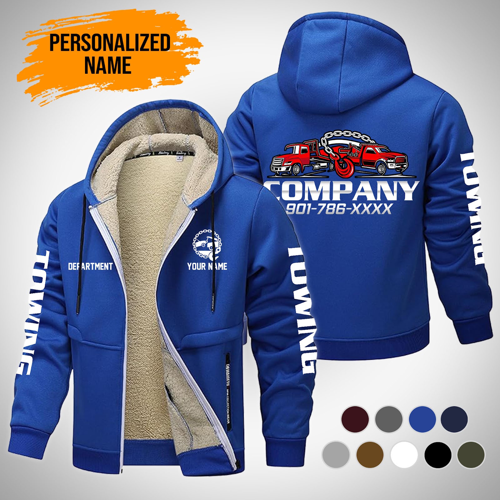 Customized Name Tow Truck Lamb Fleece Thick Coat Blue