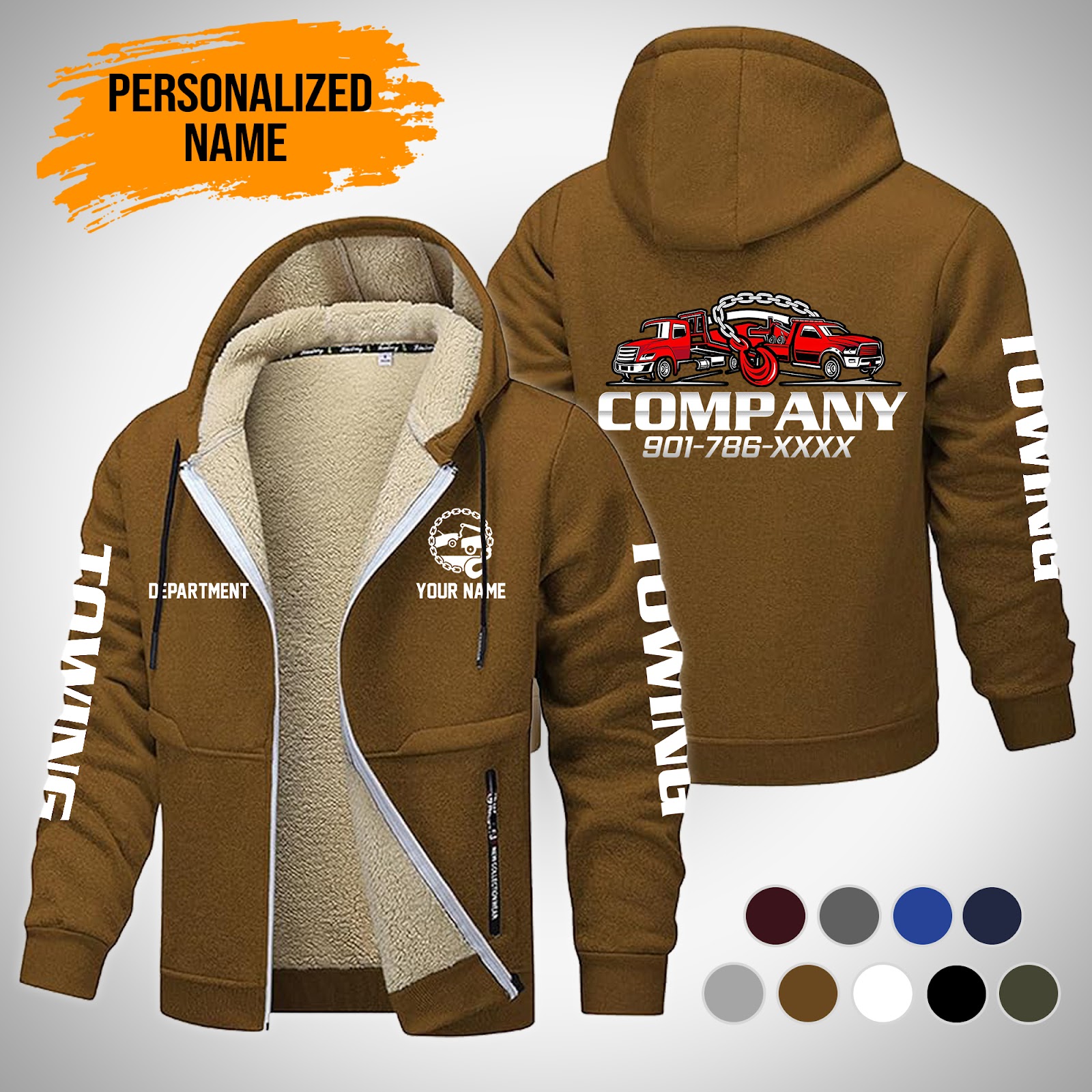 Customized Name Tow Truck Lamb Fleece Thick Coat Brown