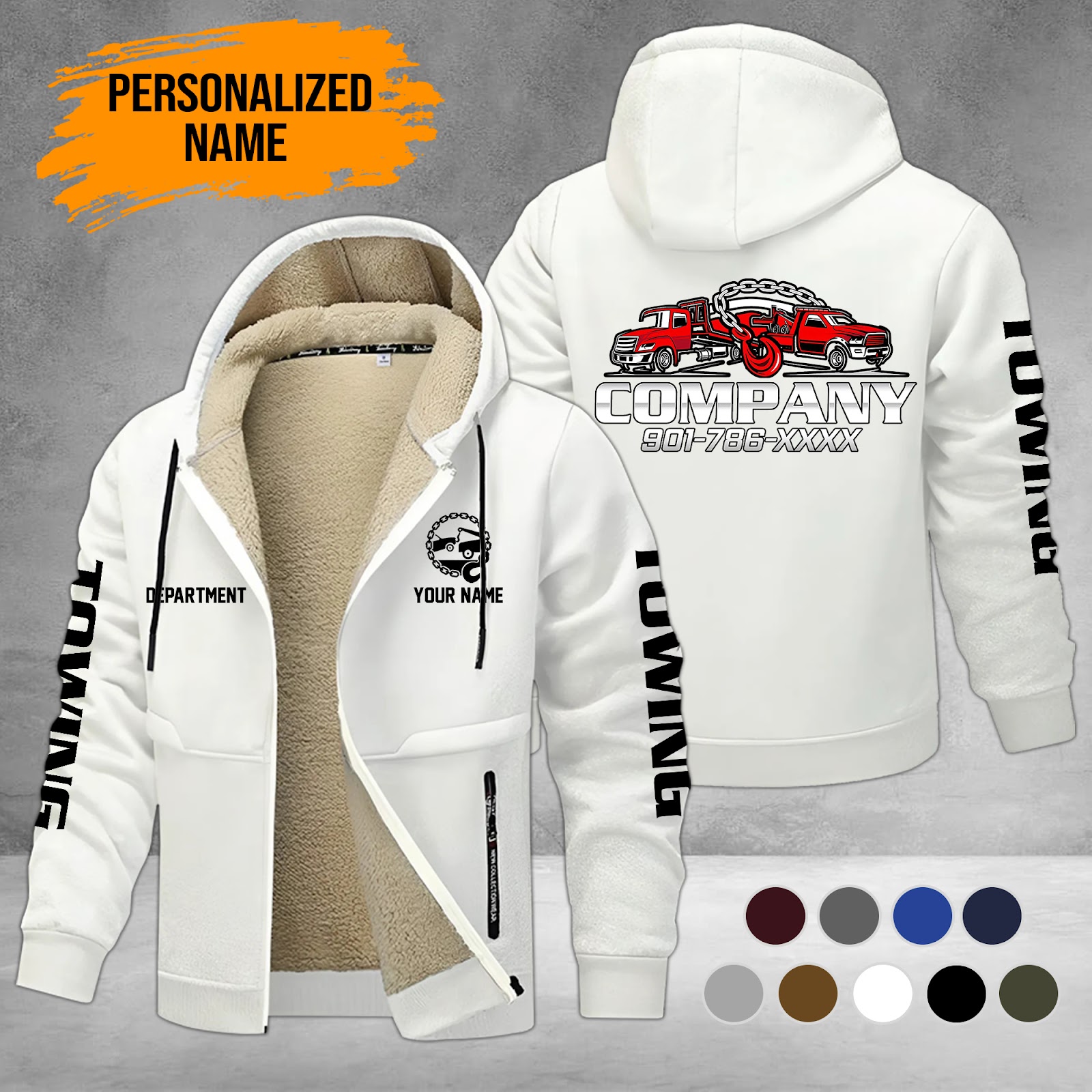 Customized Name Tow Truck Lamb Fleece Thick Coat White