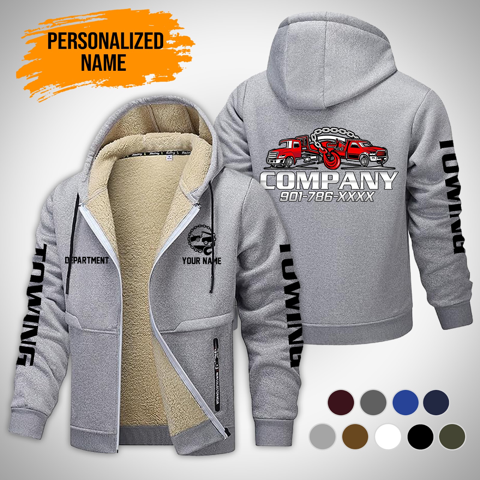 Customized Name Tow Truck Lamb Fleece Thick Coat Grey
