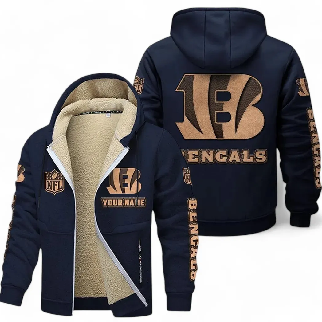 Fan Roar Squad Lamb Fleece Thick Coat Cozy Stadium Night Coat Navy Blue