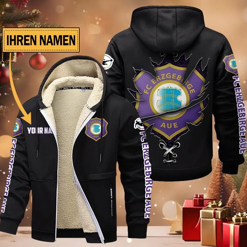 FC Erzgebirge Aue Custom Name Special Edition Lamb Fleece Thick Coat