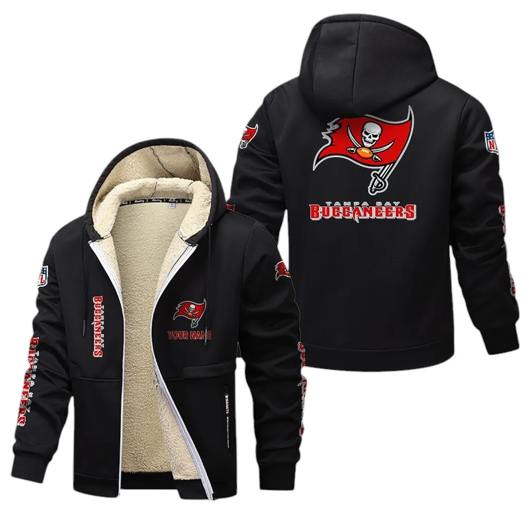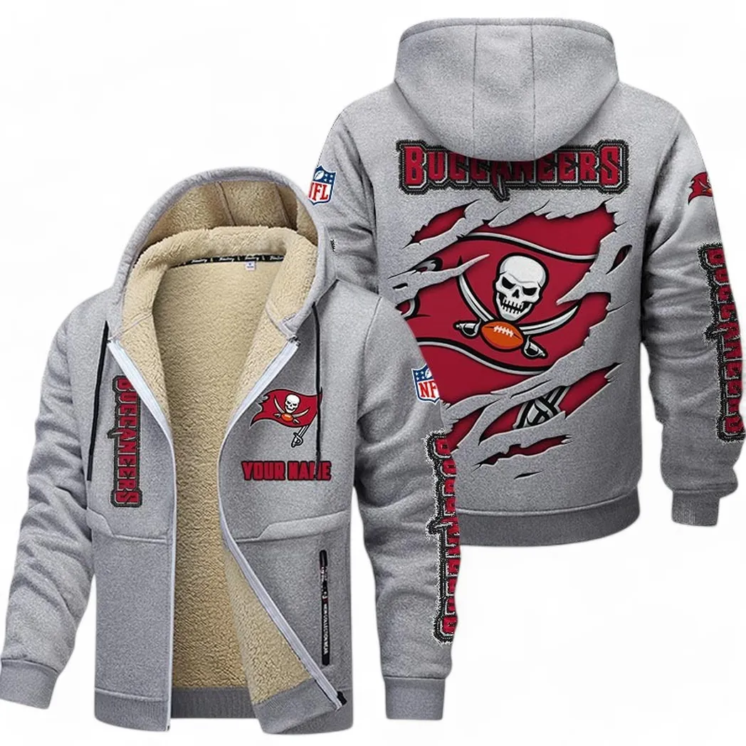 Football Silver Crew Lamb Fleece Thick Coat Custom Sport Fan Coat Navy Blue
