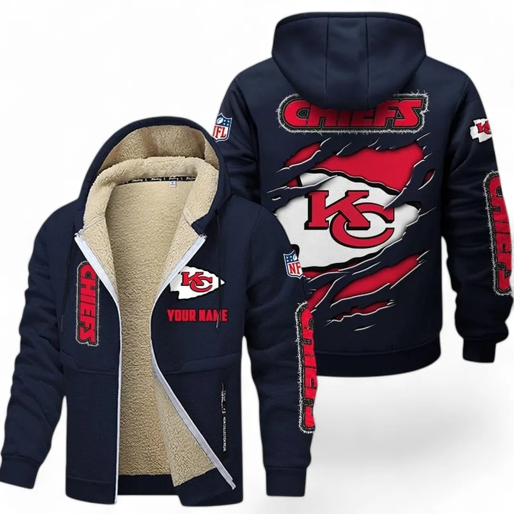 Football Red Crew Lamb Fleece Thick Coat Premium Thick Fan Coat Navy Blue