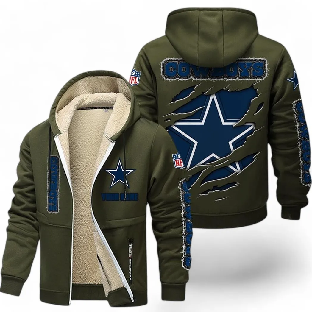 Game Day Spurs Lamb Fleece Thick Coat Premium Thick Fan Coat Army Green