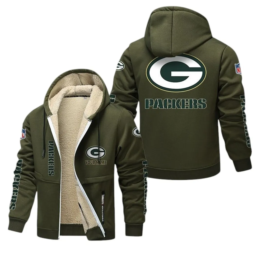 Green Crew Lamb Fleece Thick Coat Tailgate Spirit Fleece Coat Army Green