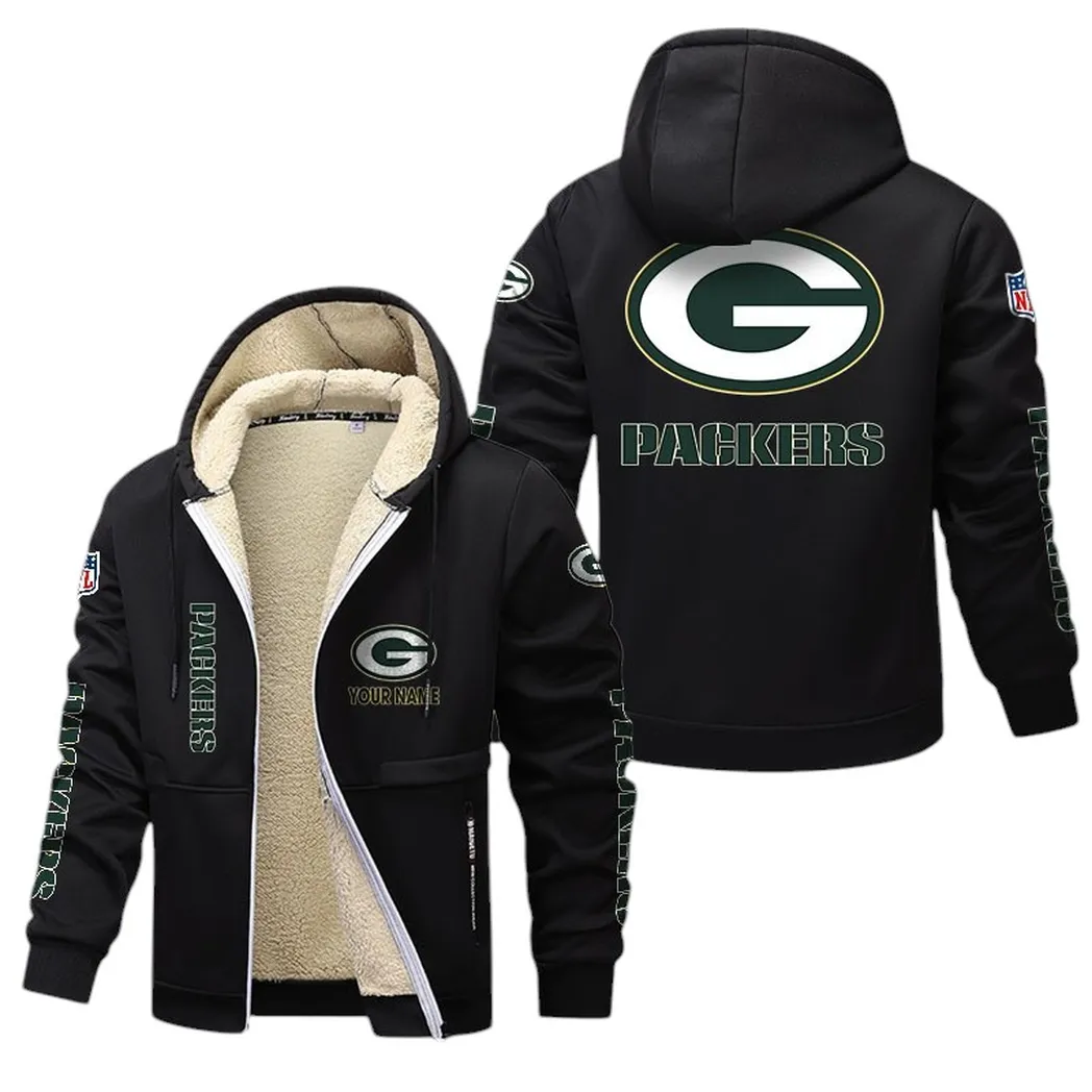 Green Crew Lamb Fleece Thick Coat Tailgate Ready Lamb Fleece Coat Black