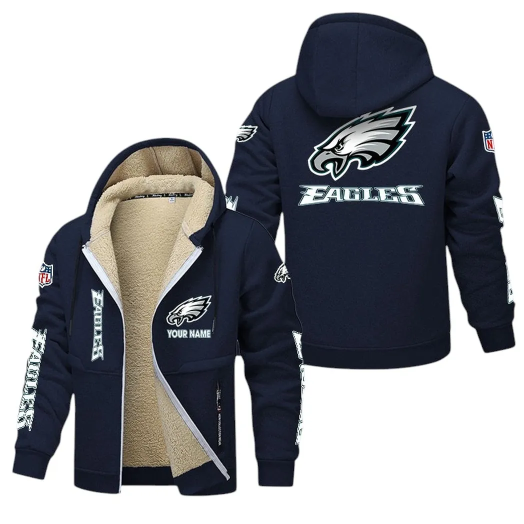 Green Talons Lamb Fleece Thick Coat Cozy Game Day Coat Navy Blue
