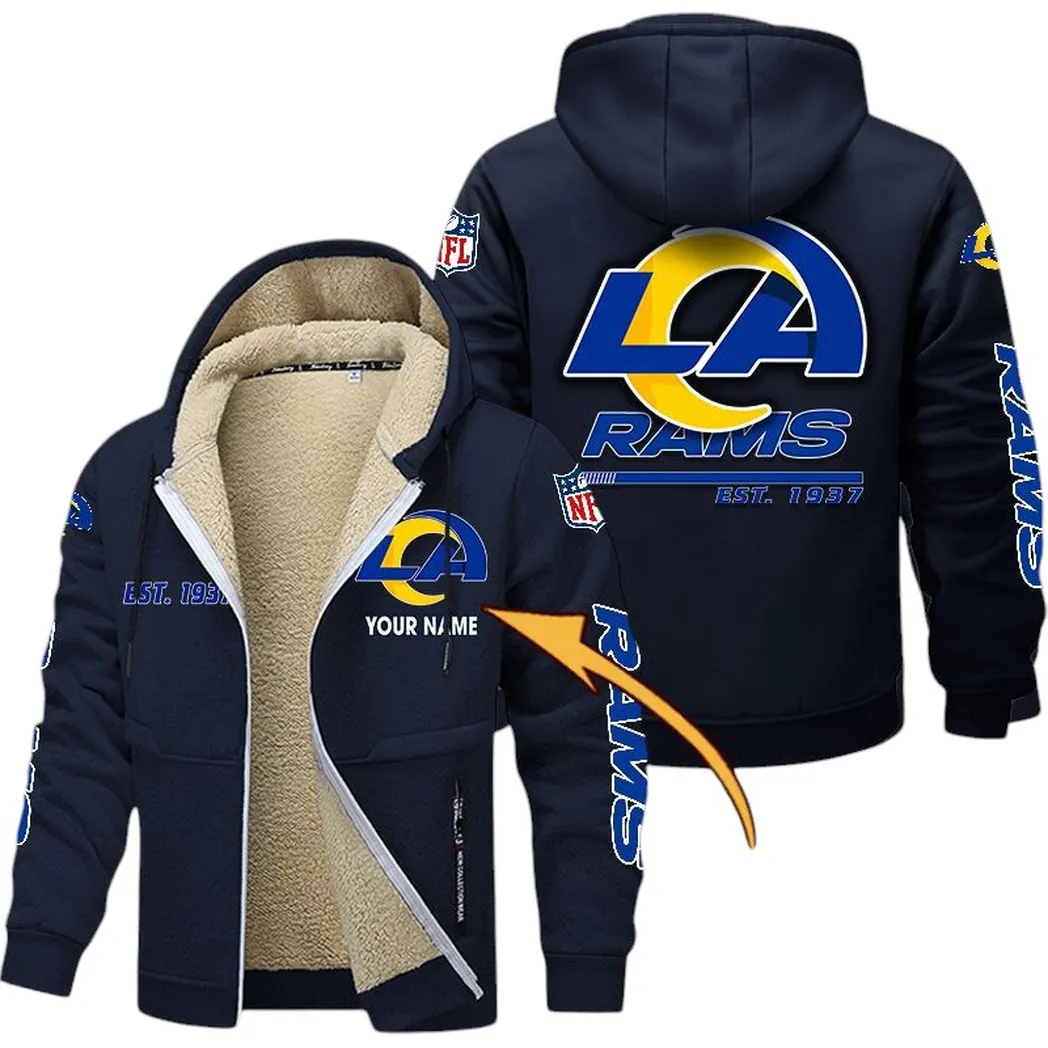 Horned Army Lamb Fleece Thick Coat Tailgate Ready Lamb Fleece Coat Navy Blue
