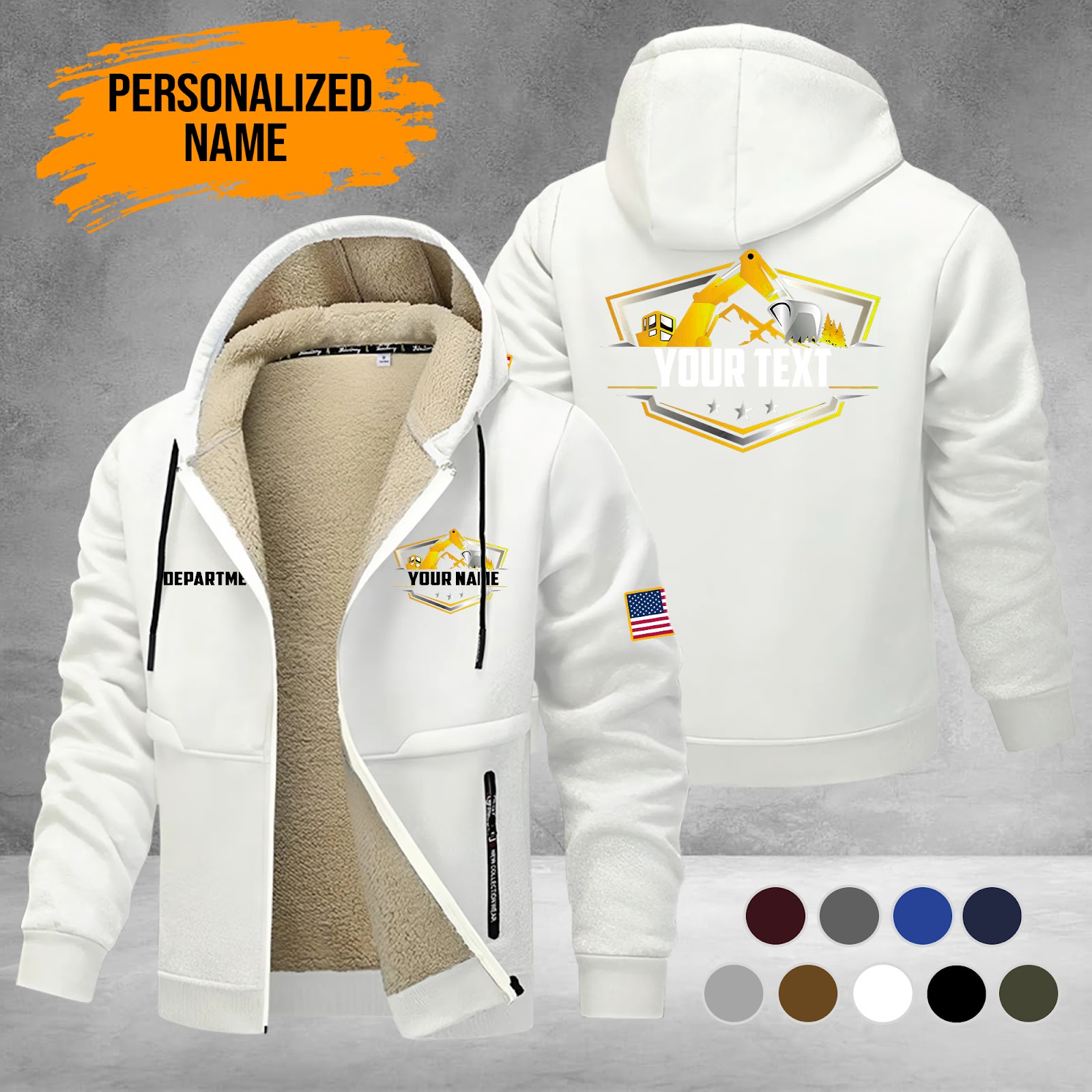 Love Heavy Equipment Uniform Style Top Gift Lamb Fleece Thick Coat Black