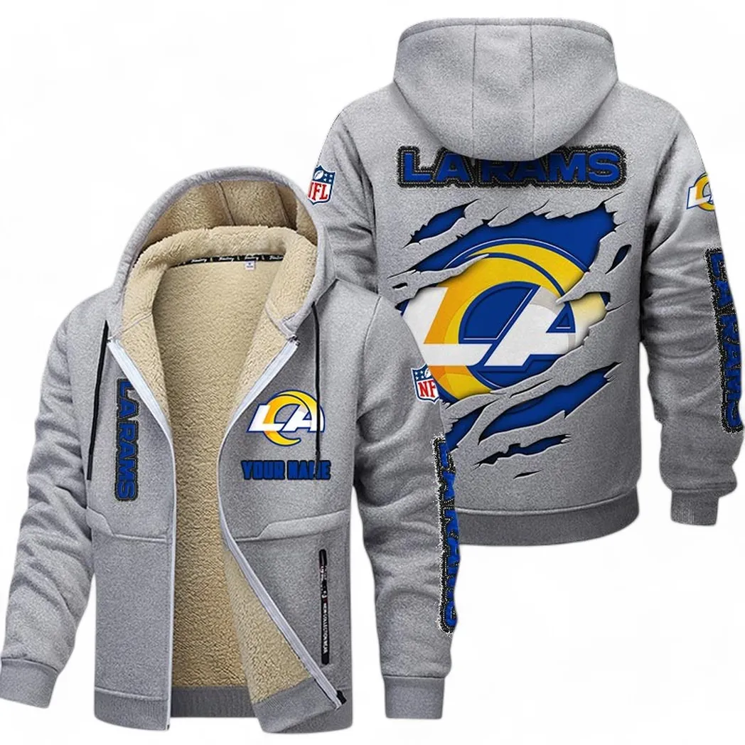 Midnight Rams Lamb Fleece Thick Coat Cold Weather Fan Comfort Light Gray