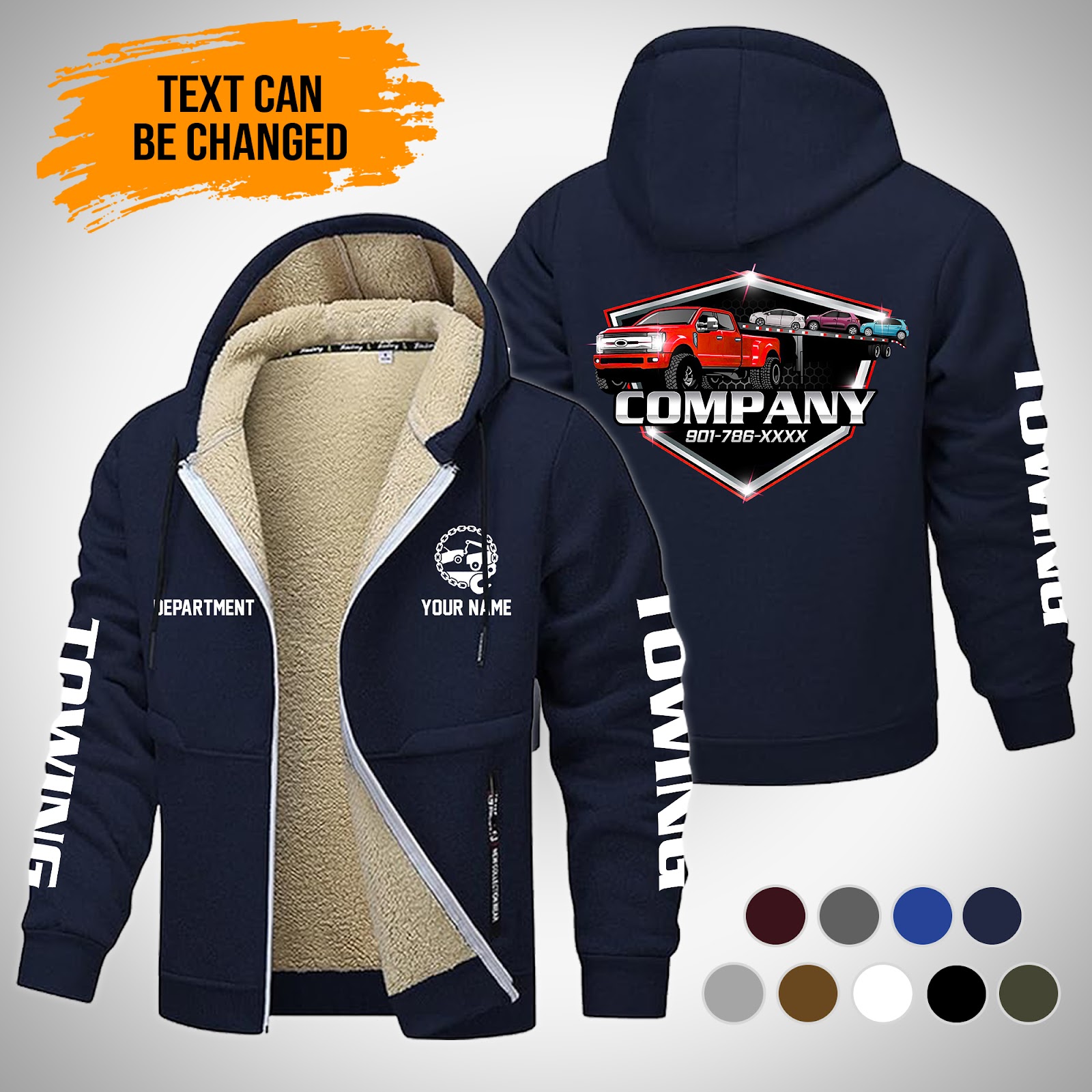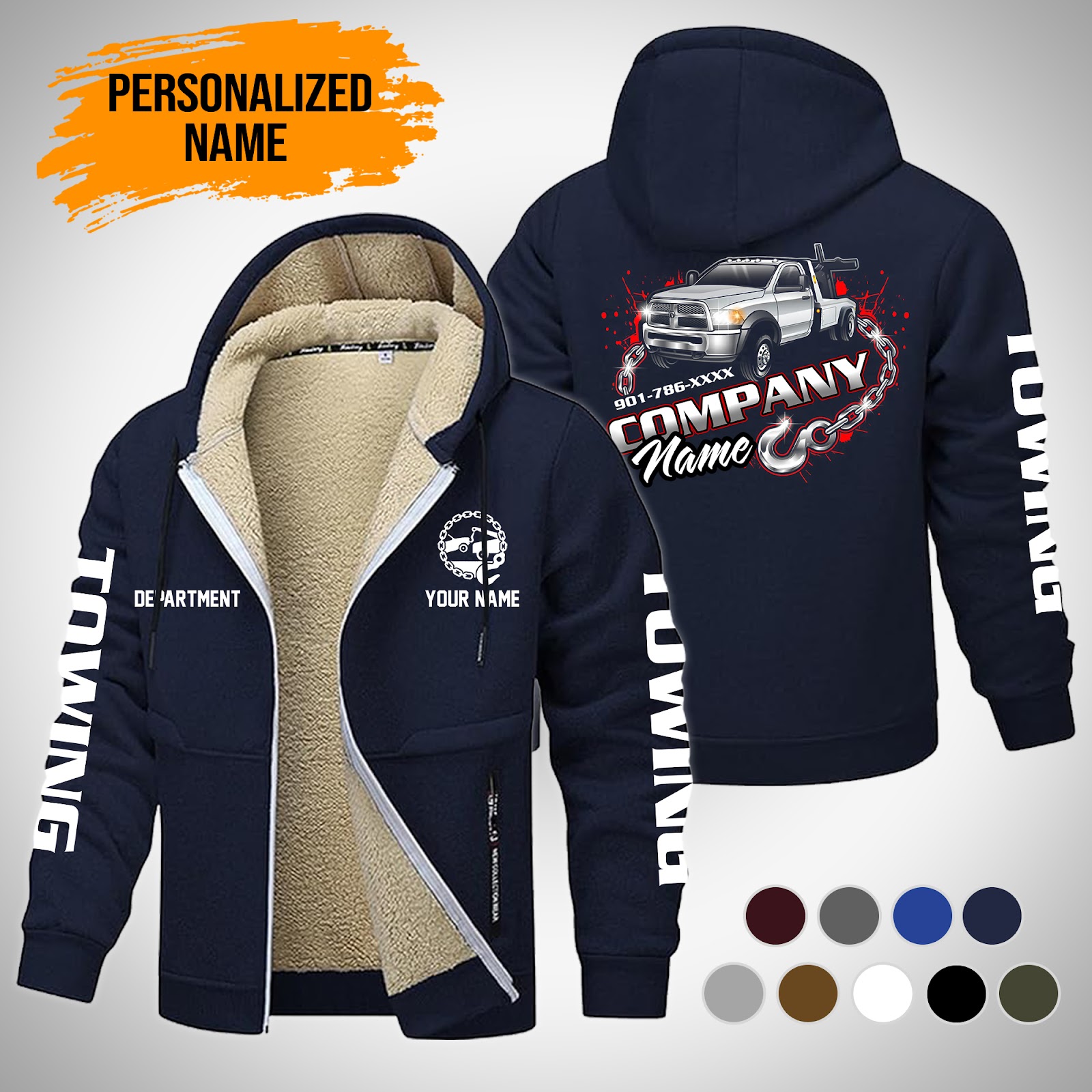 Personalized Name Tow Truck Lamb Fleece Thick Coat Navy