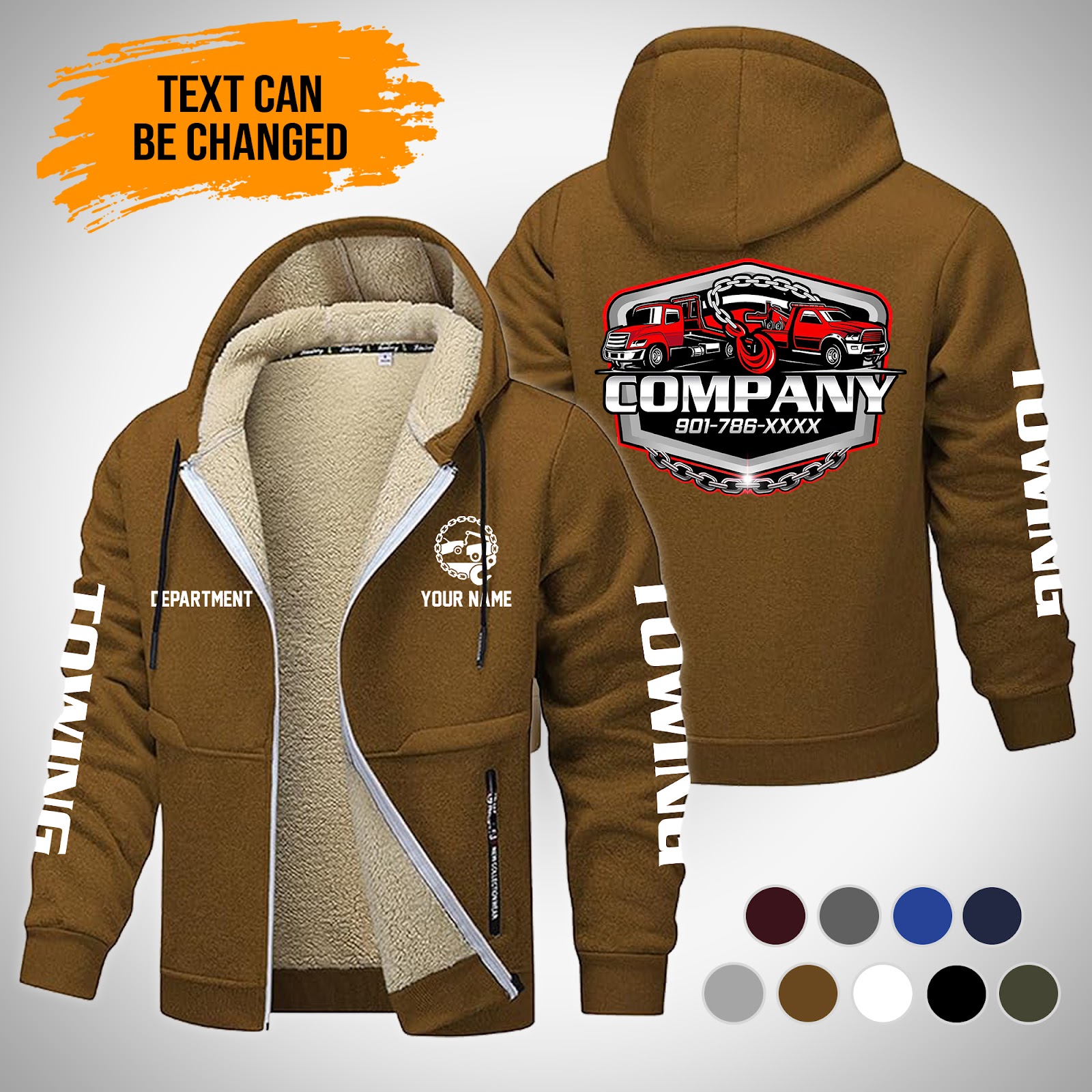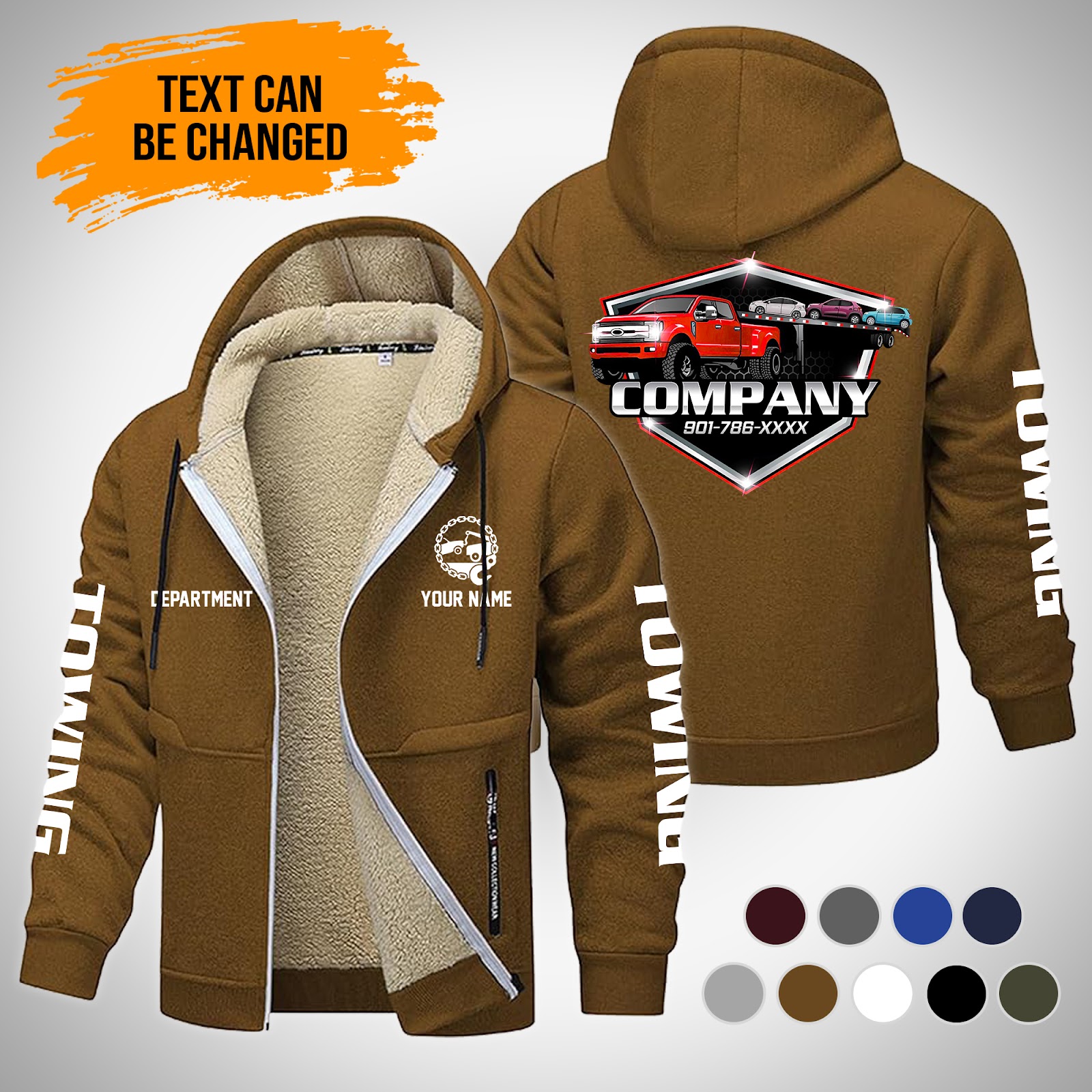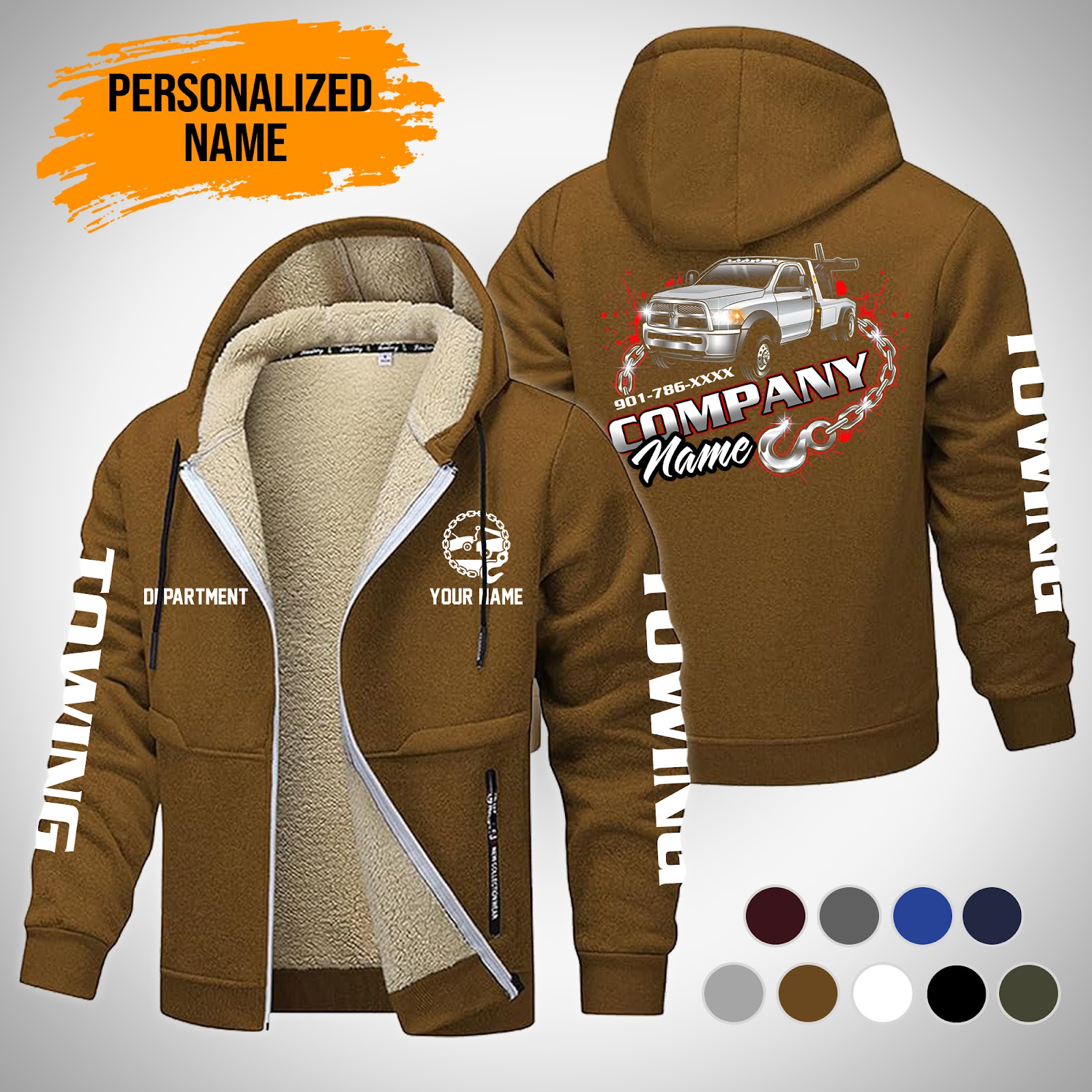 Personalized Name Tow Truck Lamb Fleece Thick Coat Brown