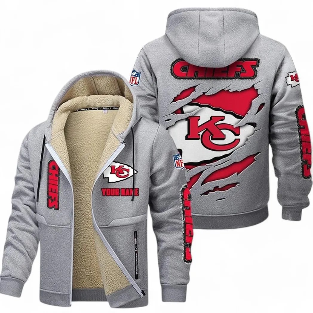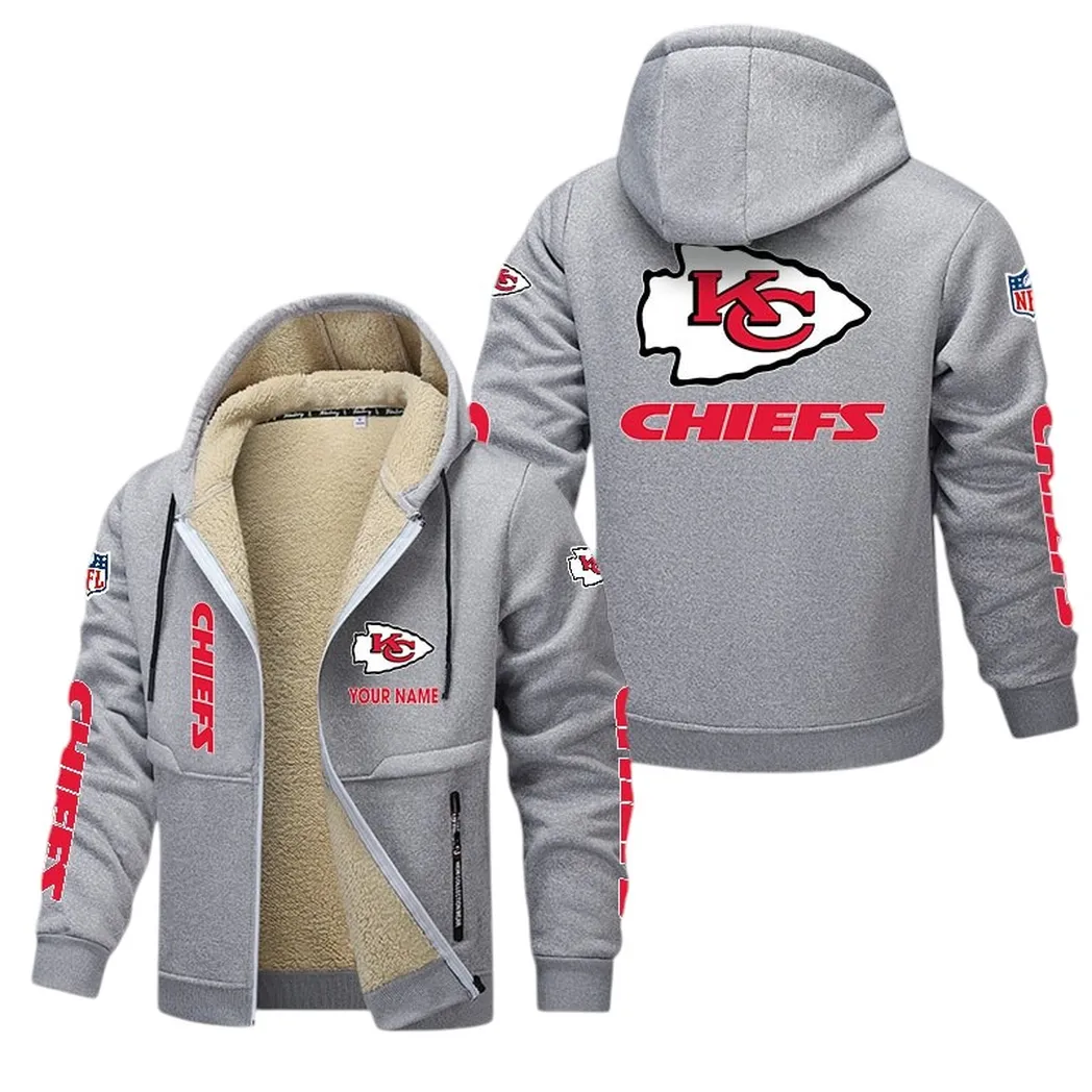Red Crew Lamb Fleece Thick Coat Tailgate Spirit Fleece Coat Light Gray