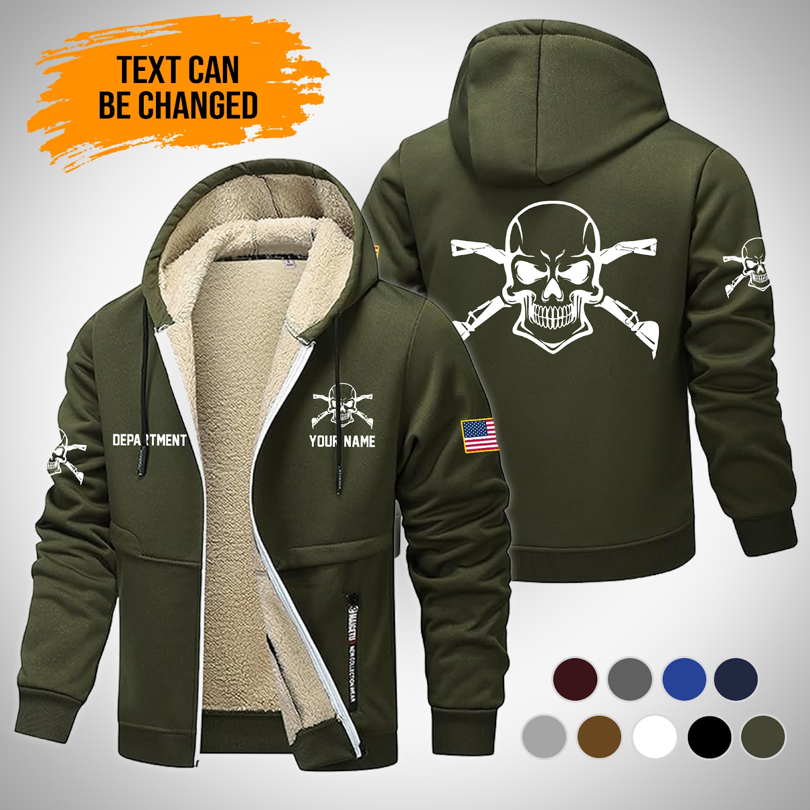 Skull Love Heavy Equipment Uniform Style Top Gift Lamb Fleece Thick Coat Army Green