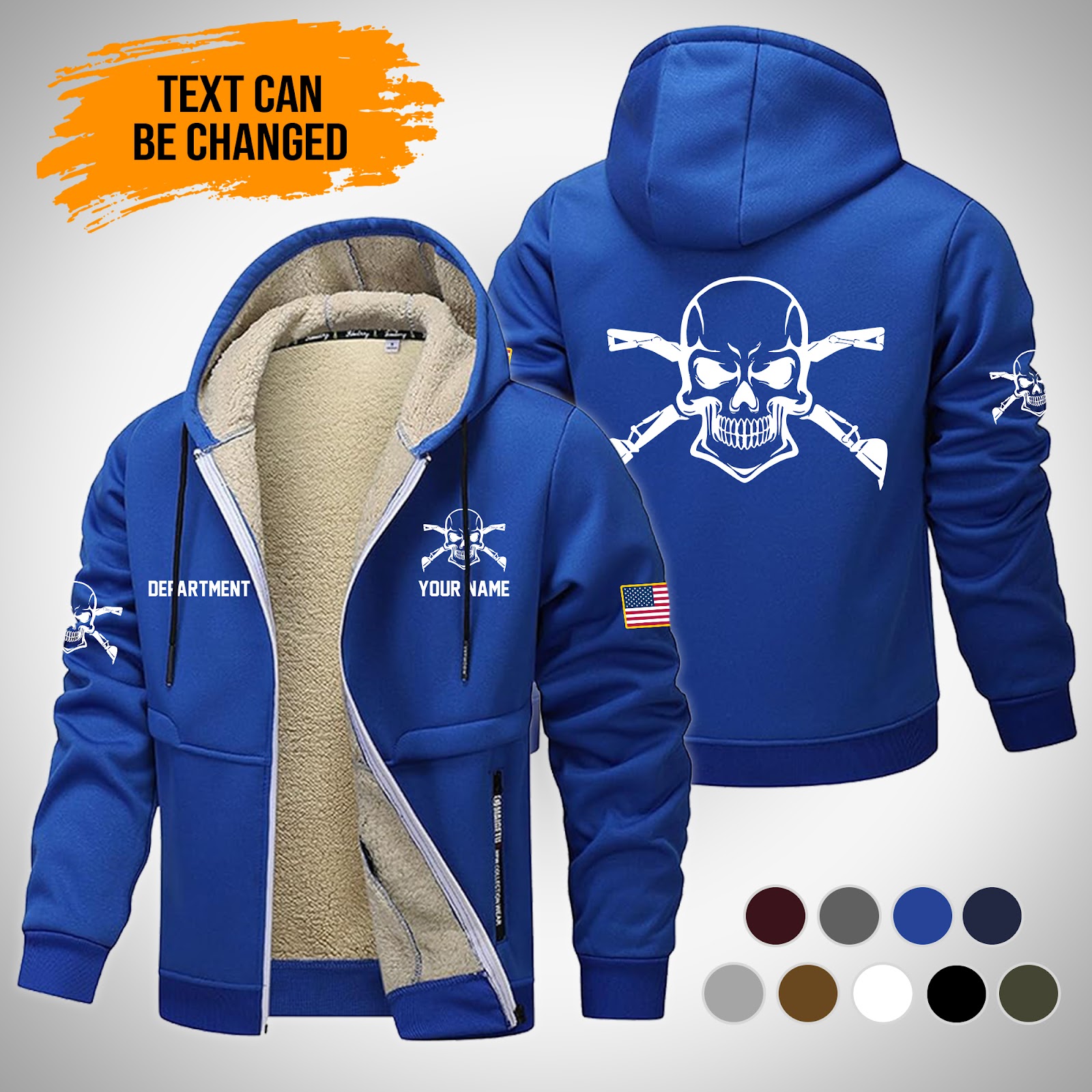 Skull Love Heavy Equipment Uniform Style Top Gift Lamb Fleece Thick Coat Blue