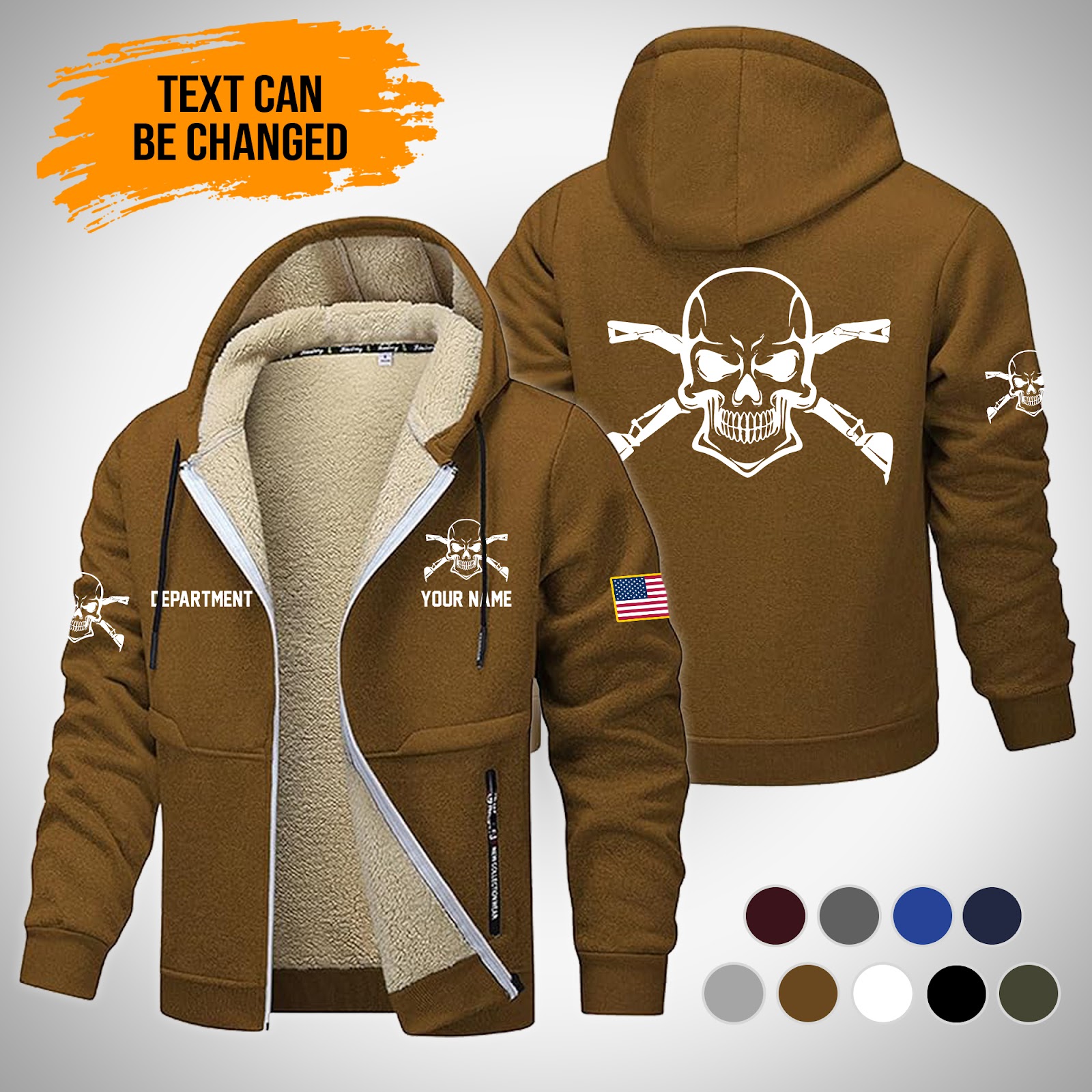 Skull Love Heavy Equipment Uniform Style Top Gift Lamb Fleece Thick Coat Brown