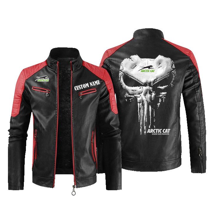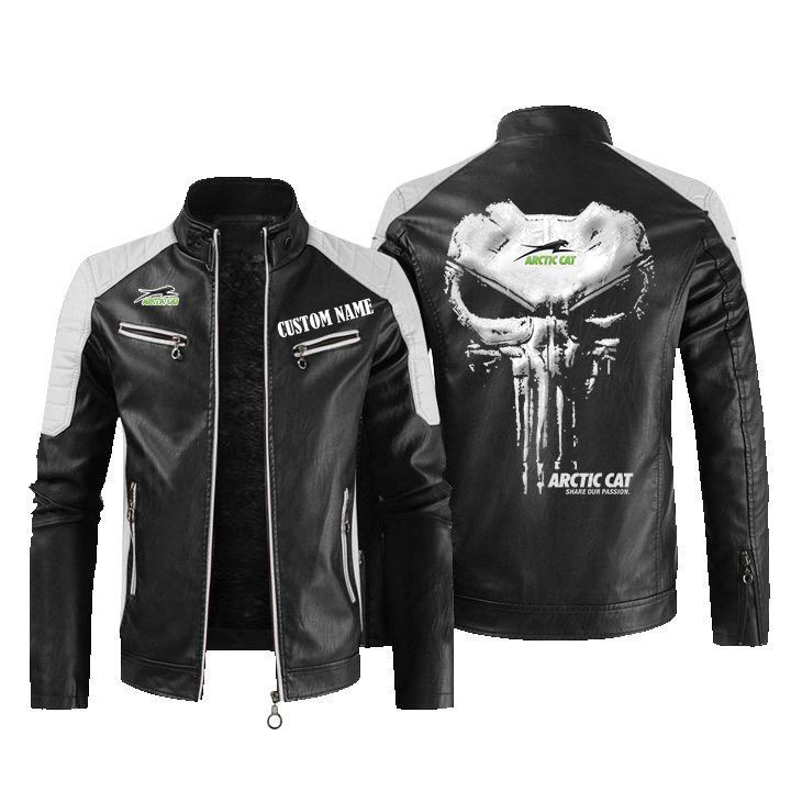 Custom Name Punisher Skull Arctic cat Leather Biker Jacket