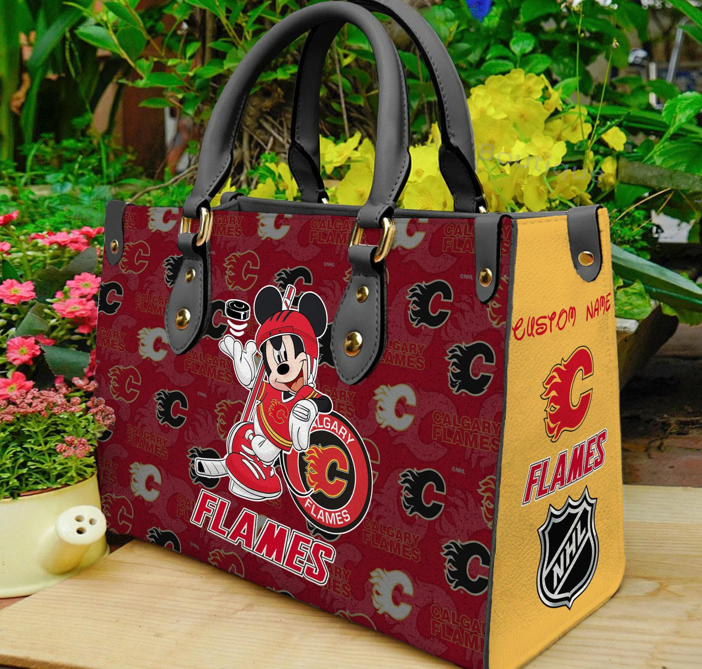 Calgary Flames Mickey Women Leather Hand Bag For Women Sport Wear Fans